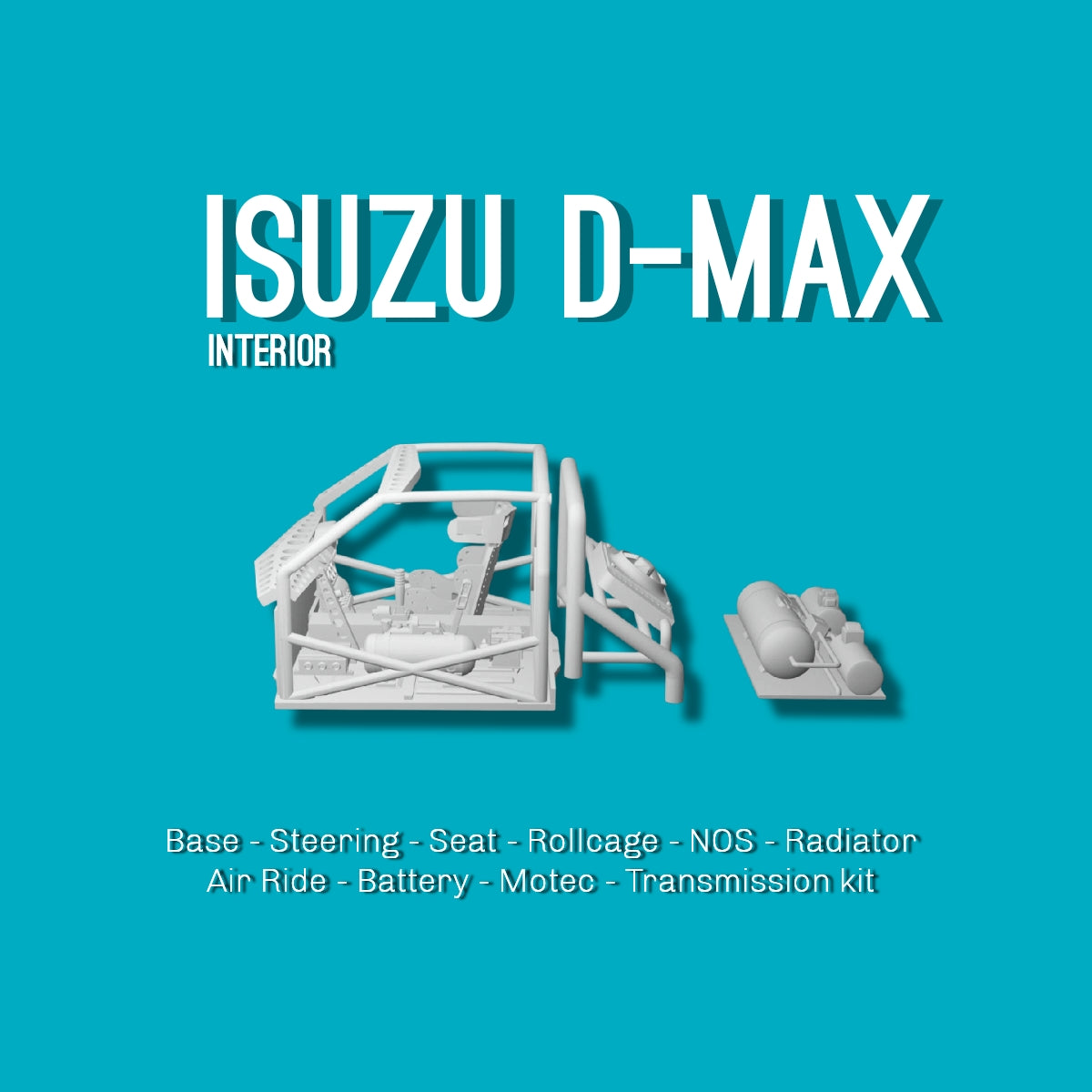 - Base Interior. - Radiator. - Steering. - Battery Pack. - Seat. - Motec. - Rollcage. - Nos. - Transmission Kit. - Air Ride.
